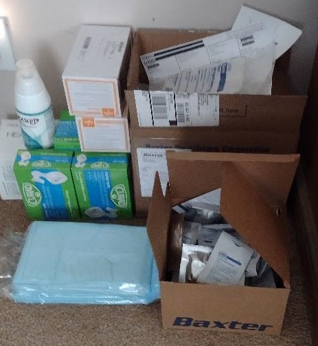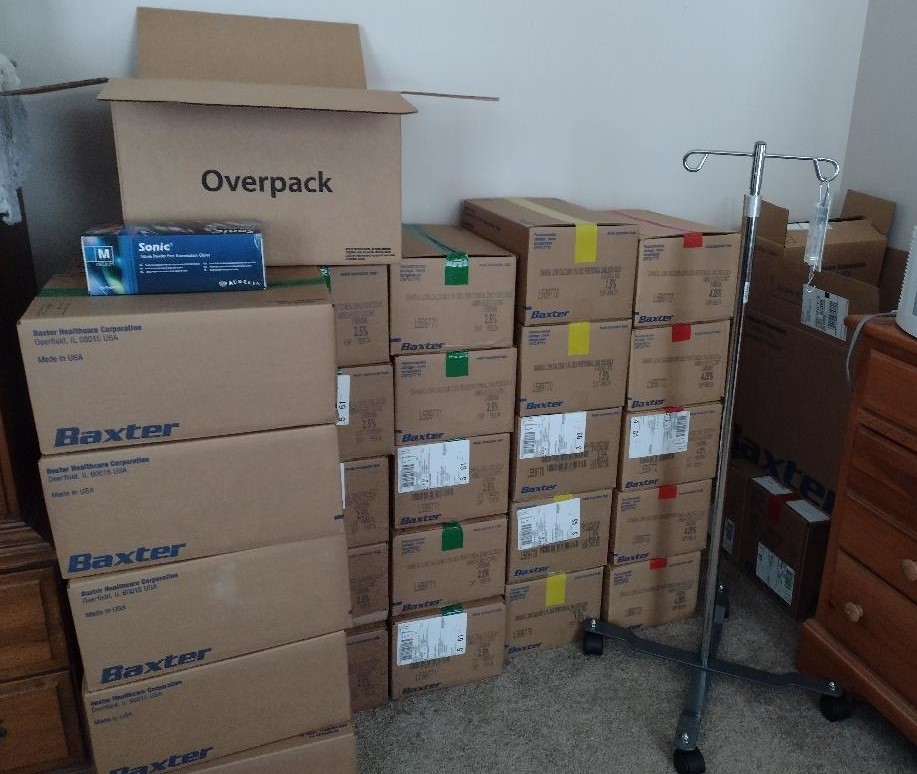 Here are a few of the supplies now residing in our bedroom. This is about a month’s supply: