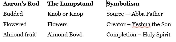 The three elements in both Aaron’s rod and the Lampstand represent the Godhead.